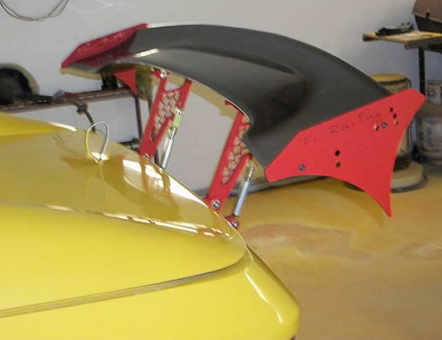 Comes with Black Powder coated finish on Wing Tip ends, Spoiler pedestals and body mounts. Variable pedestal mounting widths up to 27" apart.